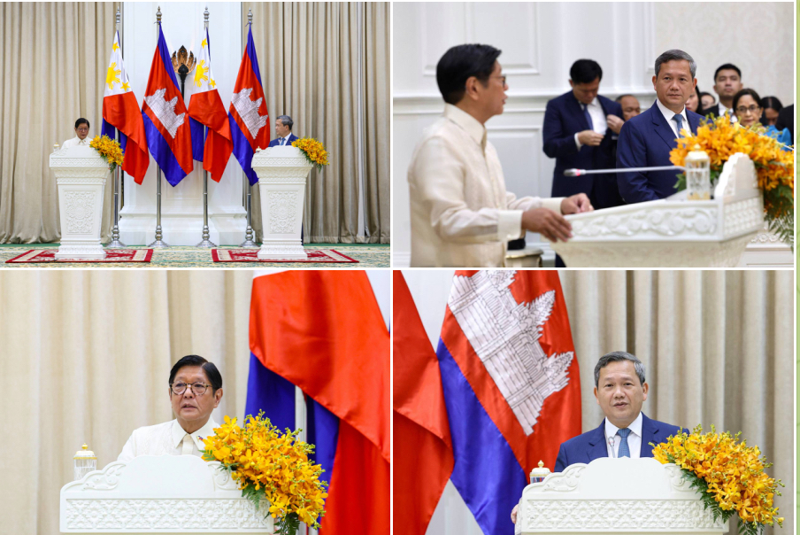 សម្តេចធិបតី ហ៊ុន ម៉ាណែត អញ្ជើញធ្វើសន្និសីទសារព័ត៌មានរួម ជាមួយ ឯកឧត្តម ហ្វឺឌីណាន់ រ៉ូម៉ូលដេស ម៉ាកូស ជូញៀ (Ferdinand Romualdez Marcos Jr.) ប្រធានាធិបតី នៃសាធារណរដ្ឋហ្វីលីពីន នៅវិមានសន្តិភាព។
