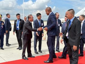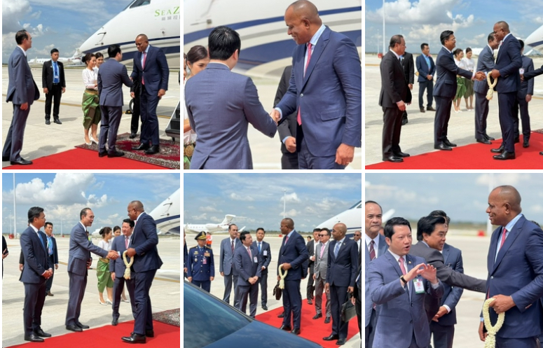 (ភ្នំពេញ)៖ លោក Roosevelt Skerrit នាយករដ្ឋមន្ត្រីនៃកុំមិនវែលដូមីនីក បានអញ្ជើញមកដល់កម្ពុជាហើយ នៅព្រឹកថ្ងៃទី០៨ ខែតុលា ឆ្នាំ២០២៥នេះ ដើម្បីបំពេញទស្សនកិច្ចការងារ រយៈពេល៣ថ្ងៃ។