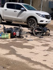 ខេត្តបាត់ដំបង៖ ករណីគ្រោះថ្នាក់ចរាចរណ៍រវាងម៉ូតូនិងម៉ូតូ បណ្តាលអោយបុរស២នាក់រងរបួសធ្ងន់ ដែលហេតុការណ៍ខាងលើស្ថិតតាមបណ្តោយផ្លូវលេខ០៣ នៅត្រង់ចំណុចភូមិកម្មករ សង្កាត់ស្វាយប៉ោ ក្រុងបាត់ដំបង។