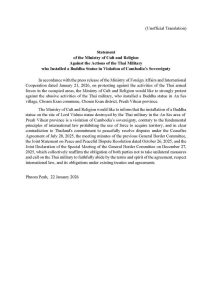 សេចក្តីថ្លែងការណ៍ របស់ក្រសួងធម្មការនិងសាសនា ប្រឆាំងជំទាស់ចំពោះសកម្មភាពរបស់យោធាថៃ ដែលបានតម្កល់ព្រះពុទ្ធប្បដិមារំលោភបំពានលើដែនអធិបតេយ្យភាពរបស់កម្ពុជា។